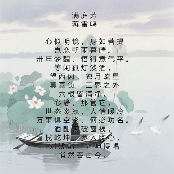 蒋雷鸣老师的这首《贺新郎・下岗创业感怀》,是一篇贴合 “贺新郎” 豪放激昂词牌特质的抒怀佳作,以 “下岗创业” 的人生困境为底色,融雄关、热血、丹心等豪壮意象,既写尽困境中的坚韧与不甘,又抒出男儿的壮志与亮节,是 “以困砺志、以情铸魂” 的豪放词精品。