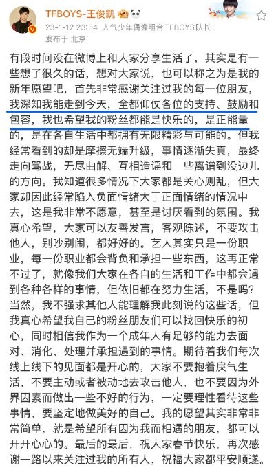 王俊凯发文感恩粉丝支持,行动诠释真诚