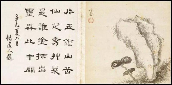 《种芹人曹霑画册》长31.5厘米、宽29.4厘米。全册共纳有设色写意画八幅,每幅画均在左侧附有题诗页。画页与诗页,粘连成帧,八帧粘连,折页成册。画册材质为绢,诗页材质为纸。我们一起来欣赏: