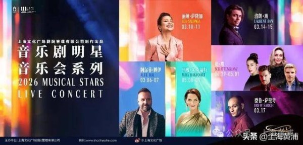“2026音乐剧明星系列音乐会”将迎来空前豪华阵容。2026年3月起至5月,伦敦西区音乐剧明星阿尔菲·博伊,百老汇音乐剧明星丽娅·萨隆加,法语音乐剧明星洛朗·班以及德语音乐剧明星德鲁・萨里奇、玛雅·哈克福特、颜·阿曼、马丁•马克特、安妮米可·凡·丹、安东尼娅·卡林诺斯基,将携手各自的嘉宾朋友们,呈现六台十二场精彩绝伦的音乐剧明星音乐会。