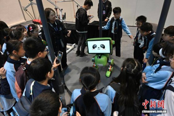 图为学生与智能教育机器人互动。中新网记者 李志华 摄