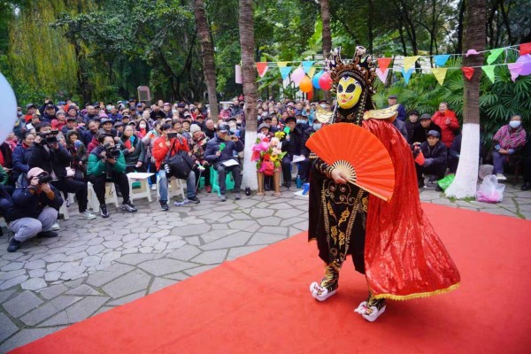 成都:川剧名家陈巧茹在新华公园唱响《别洞观景》