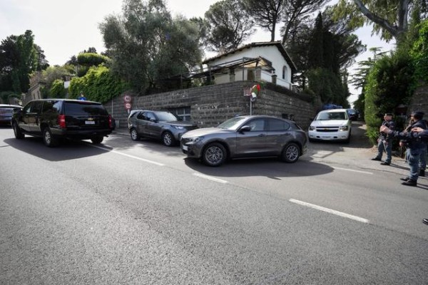 4月19日,在意大利罗马,美国代表团在结束与伊朗代表团的第二轮间接会谈后离开阿曼驻意大利使馆。新华社/美联