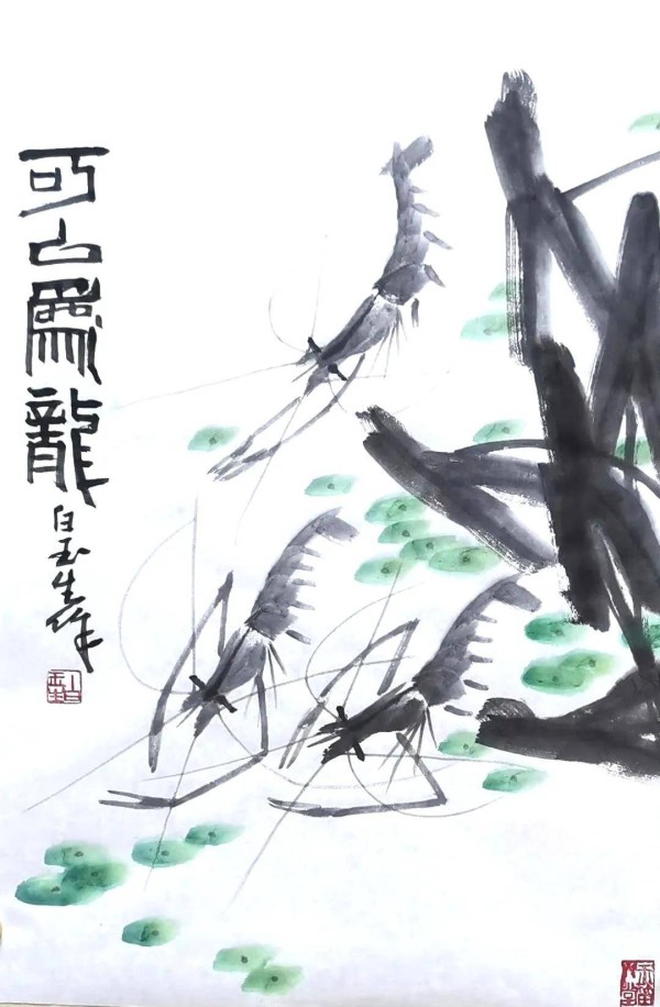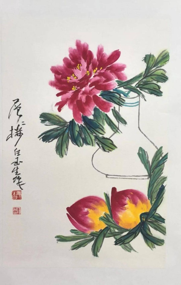 最妙者乃第三重"师法心源"之境。先生经数十年淬炼,将娄师白之明快、董寿平之清雅融会贯通,终成自家面貌。观其笔下牡丹,非徒具雍容之态,更见雅致幽香;所作虾蟹,非止形似逼真,尤见生机灵动。潘捷君谓其画"无火气、俗气、匠气,唯见清气、喜气、仙气",此九字品评,可谓的论。
