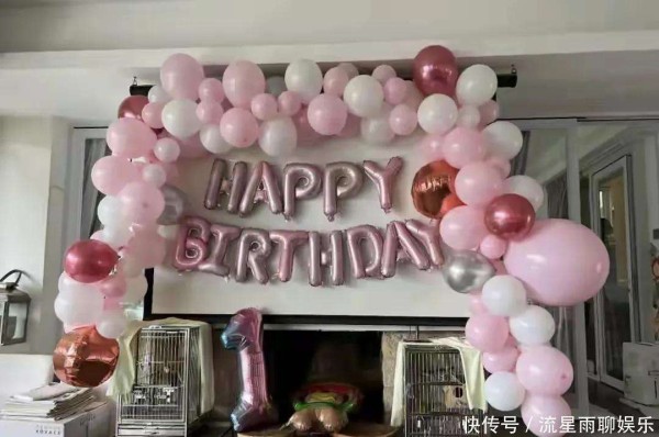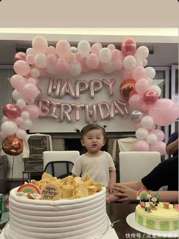 2024年9月出生的Skye,在生日当天身着纯白棉T搭配俏皮羊角辫,肉嘟嘟的脸蛋上嵌着会说话的大眼睛。梁颖晨将现代简约风格的豪宅精心改造:素雅的灰白主调中,粉白相间的气球簇拥着壁炉,电视墙上的巨型粉色生日字母活泼跳脱,那个无处安放的数字\"1\"最终在石墩上找到了可爱归宿。