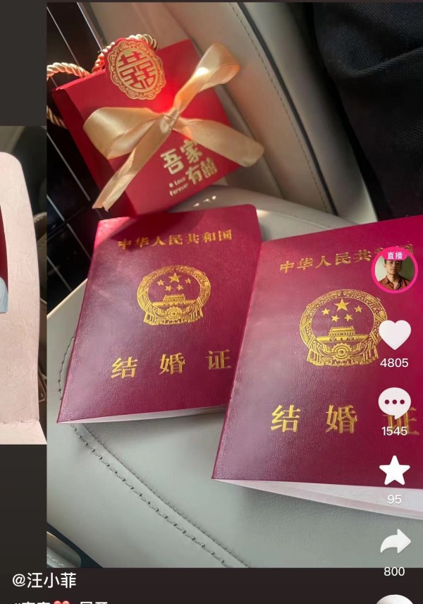 5月27日,汪小菲在社交平台晒出与Mandy的结婚证,官宣领证。Mandy手上鸽子蛋钻戒十分抢眼。