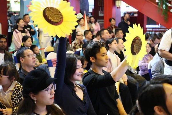 音乐会在唐乐击鼓声中拉开帷幕,由向阳花乐团倾情演绎《醉啸长歌》《夕阳楼》《青玉案·元夕》等十首融合古典诗词与现代音乐的原创曲目。唐风舞蹈与诗词演唱交相辉映,带领现场观众仿佛穿越千年,步入唐宋时期的郑州,在李白、杜甫、李商隐、白居易等诗人的传世名篇中,感受中原文化的深厚积淀。演出尾声的舞蹈《只此青绿》更将现场氛围推向高潮,为整场活动画上诗意句点。活动特别设置了互动体验环节,观众可身着唐装与“李白”对饮、观看《李杜相会》情景剧,在沉浸式街区中触摸历史、对话诗人,实现从“观看”到“参与”的文化体验升级,现场反响热烈。