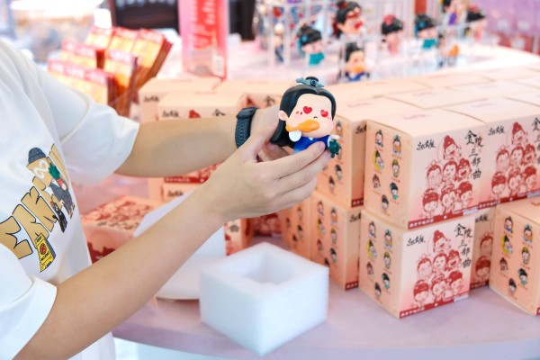 一进院的“C位”,属于南京市越剧团推出的“越金陵”文创产品。“首次发布的产品包括一系列围绕越剧和南京市越剧团经典代表作开发的文创衍生品,比如精巧的徽章、冰箱贴,Q版角色的毛绒娃娃,经典台词钥匙扣,蕴含美好寓意的抱枕、背包等。”南京市越剧团团长李晓旭说。