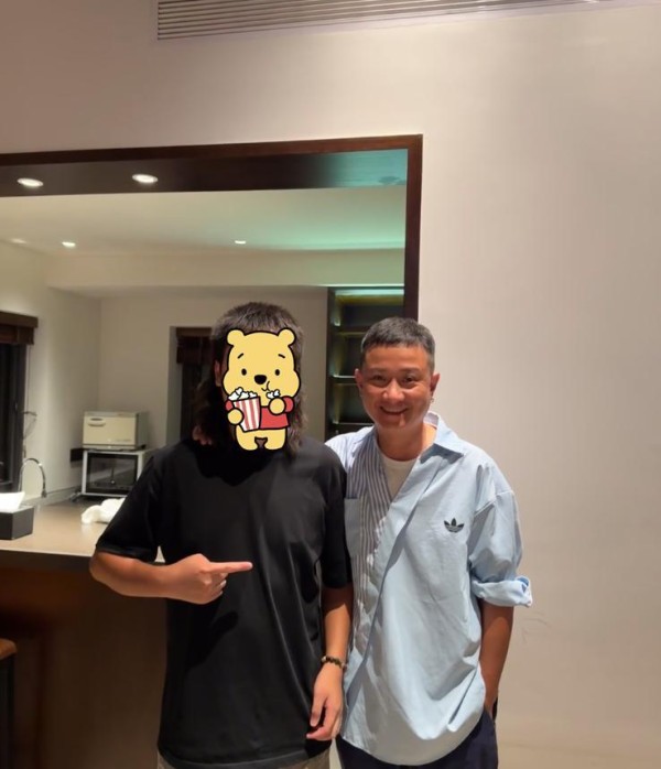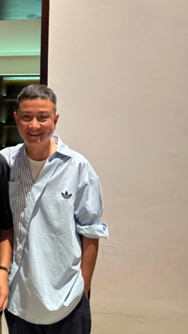 再看网友晒出的偶遇照,照片中文章身着蓝色拼接衬衫搭配黑色长裤,与男粉丝合照的他脸上挂满笑容展现出满满亲和力。