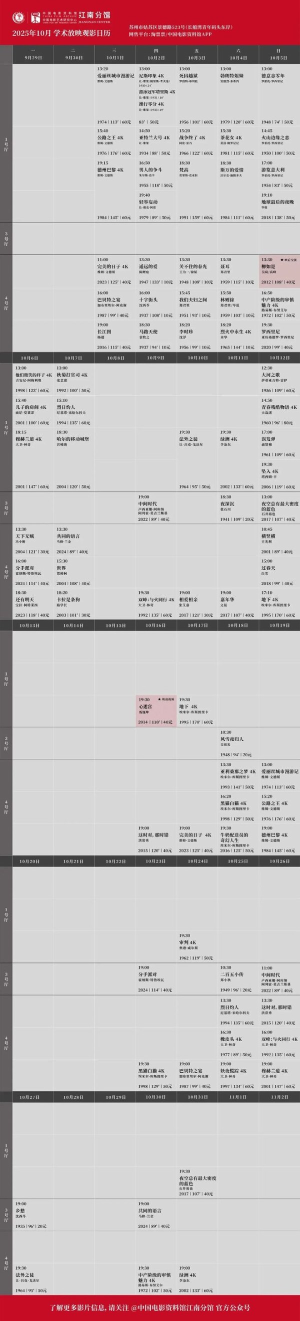所有场次均可在淘票票、中国电影资料馆APP购票,具体排片见末图,祝大家观影愉快。❤️
