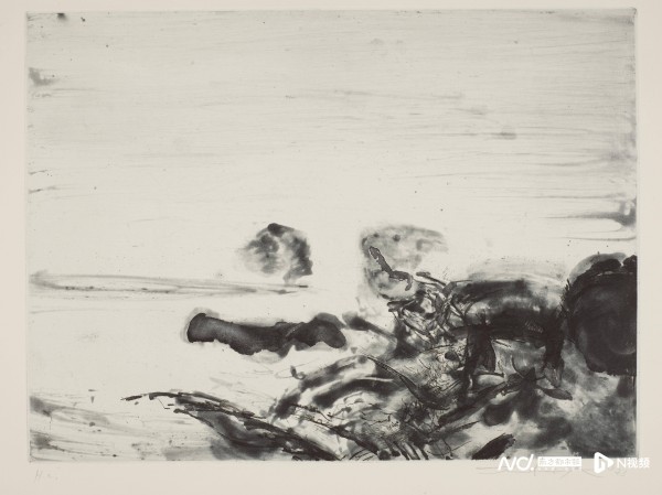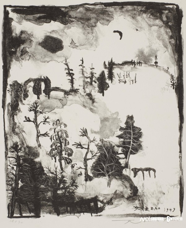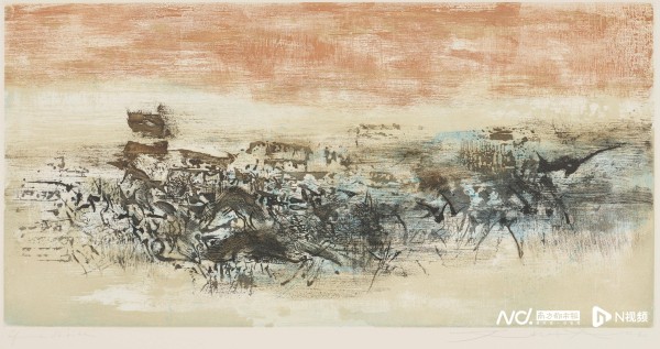 赵无极《有新月的风景》1949年 石版印刷