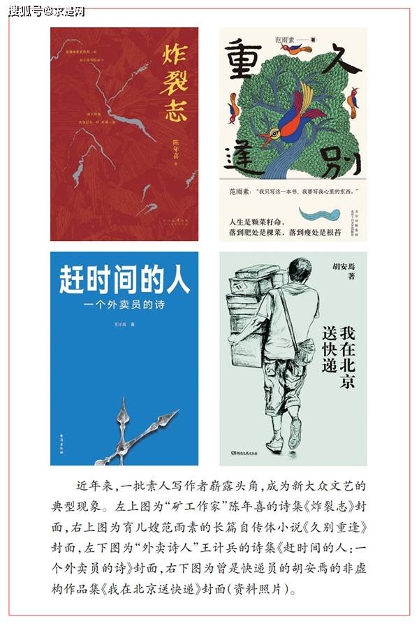 王计兵:素人写作其实一直存在,比如一些文学大家,他们在成名之前,很多都是素人。我们今天所说的素人写作,大多是指在网络环境下展现出来的普通人的写作现象。比如矿工、商贩、出租车司机、外卖员,他们都是广大人群中普普通通的一员,却因写作被甄别出来。素人写作因为更加贴近大众生活,容易被读者接纳。就像我曾在笔记里写过的感受:“我们终因普通而不凡。”素人写作的特质,在于大多有浓郁的情感与真实的生活。以我自身为例,我既是“外卖骑手”中的一员,也是“外卖骑手”的观察者。我会观察他们的日常、他们的语言表达,并整理成作品。去年,我出版诗集《低处飞行》,选“飞行”这个词是因为联想到我们的工作状态几乎都是贴地“飞行”,想传递的生活态度就是:我们有“翅膀”,无论所处位置高低,只要我们愿意,每个人都可以“飞行”。当然,素人写作者走进大众视野后,应该更加努力,不能让“素人写作”的标签拉低了新大众文艺的高度。