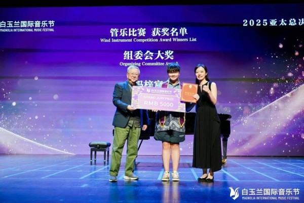 自幼学音乐的圆号选手冯梓宸获得了管乐比赛的组委会大奖,16岁的他已经是音乐学院附中的高材生,他的妈妈非常欣慰儿子的成长,这次在白玉兰音乐节中,孩子能如愿以偿登上国际赛事的舞台,更进了一大步。14岁的新加坡选手余安之学竹笛8年了,一直是新加坡华乐圈的获奖高手,屡次获得专项奖学金,这次进军白玉兰亚太区决赛,他开心地迎来了一等奖证书。
