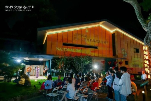 在南京世界文学客厅,国庆期间同样迎来了诗意与潮流的完美融合。日间,咖啡香与书香在文学市集弥漫;而当夜幕降临,百年建筑披上光影的华丽外衣,悦耳的音符划破夜空,掌声和欢呼声成为夜晚最美的背景音乐。一位经常参加活动的文学爱好者表示:“之前我们就来世界文学客厅参加过很多活动,比如‘长江之夜’等等,期待以后更多有趣的活动。”