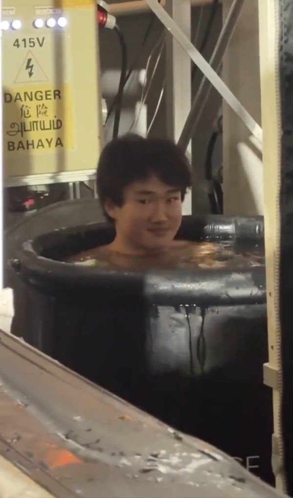 红牛车队角田冰浴视频惊现通电电箱引热议