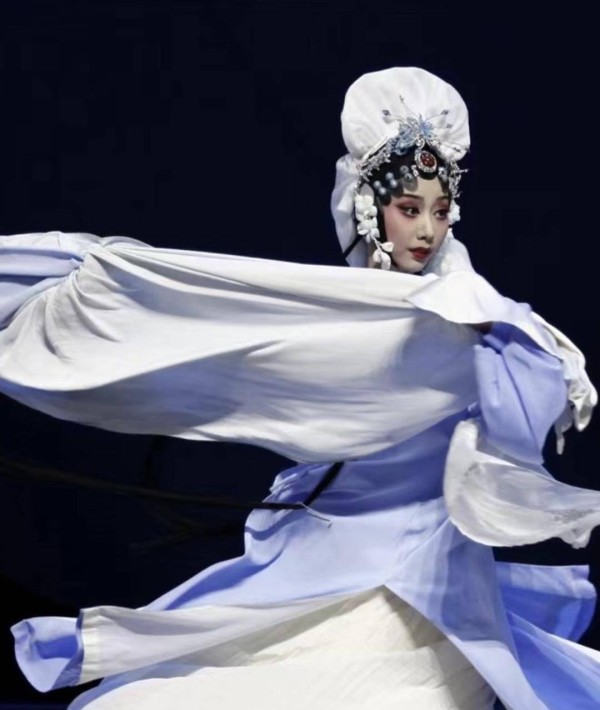 这份坚持背后,是对舞台的极致专注。“我总结发现,水袖表演失误很多时候是因为注意力没有高度集中,所以每次上场前,我都会把全身状态提起来,让身体机能全部运作,保持精神高度集中。”对“八娘”的塑造,李雨洁还有另一重挑战——把握“鬼狐旦”的表演尺度。“八娘是鬼魂,又是带着找弟弟的着急目的出场,表情和情绪不能像人类角色那样大开大合,得找到中间的度。”