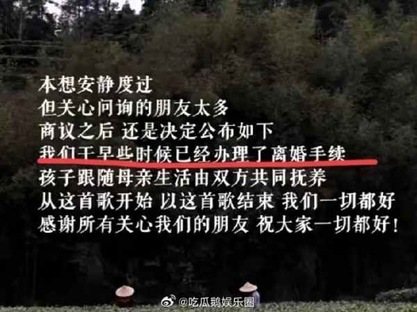李亚鹏与妻子海哈金喜官宣离婚,孩子跟随母亲生活,由双方抚养