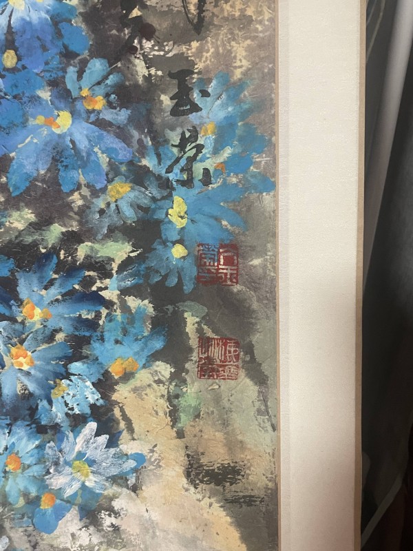 亢玉荣的作品常常蕴含着对生活的热爱和对自然的赞美。在这幅作品中,蓝色花朵象征着纯净与美好,或许传达了画家对宁静、美好世界的向往。同时,她的创作也体现了中国传统绘画中借物抒情的特点,通过对花卉的描绘,抒发内心的情感和对生命的感悟。