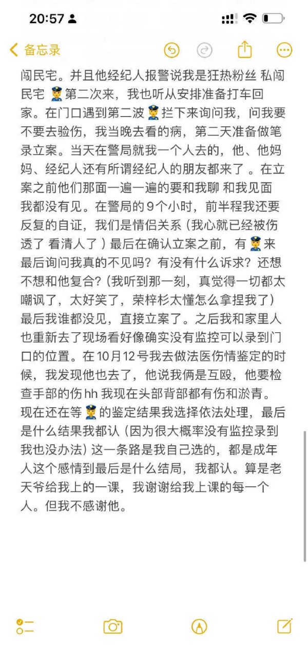 李禹熹发长文控诉19岁男友荣梓杉劈腿打人,晒出报案回执和医院诊断证明,“二话没就说把给我拎住摔倒在地”花少更新荣梓杉的精彩不断返祖太逗了,一声“呜呜呜呜”荣梓杉的返祖好有创意