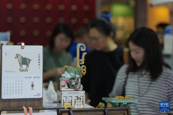 10月17日,观众在中外交流互鉴馆参观中国国家博物馆文创产品展区。