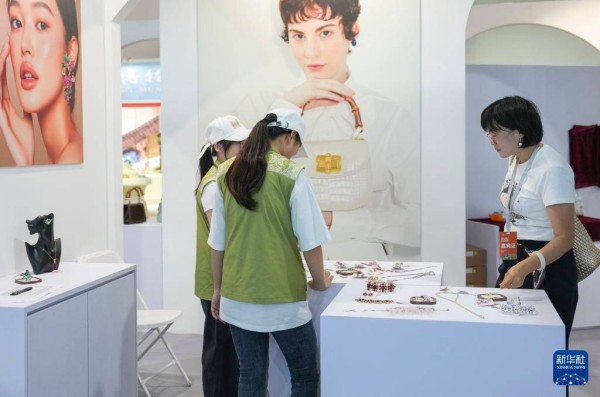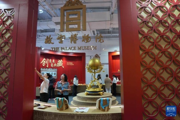 10月17日,观众在中外交流互鉴馆参观故宫博物院文创产品展区。