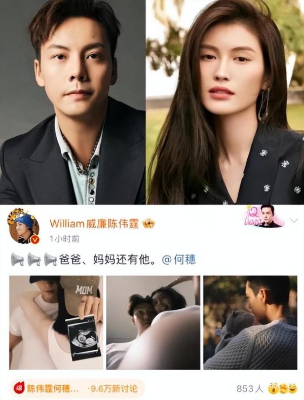 陈伟霆何穗官宣结婚生子,夫妻俩抱娃露面幸福满溢,二人隐藏好深