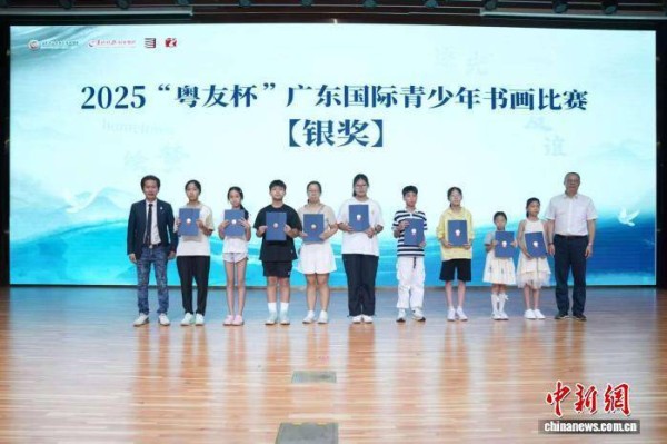 为2025“粤友杯”广东国际青少年书画比赛银奖获得者颁奖。主办方 供图