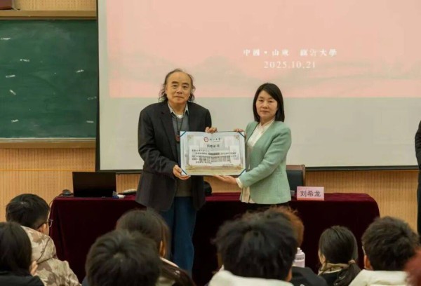 2025年10月21日,中国美术学院著名学者、书法家、篆刻家、金石学家、书法教育家韩天雍教授应邀访问临沂大学美术学院,举行著作捐赠暨特聘教授聘任仪式,并作题为《从比较学的观点看王羲之对日本书道的影响》的学术讲座。活动由书法学教研室主任刘希龙主持,美术学院书法学专业师生200余人参加。