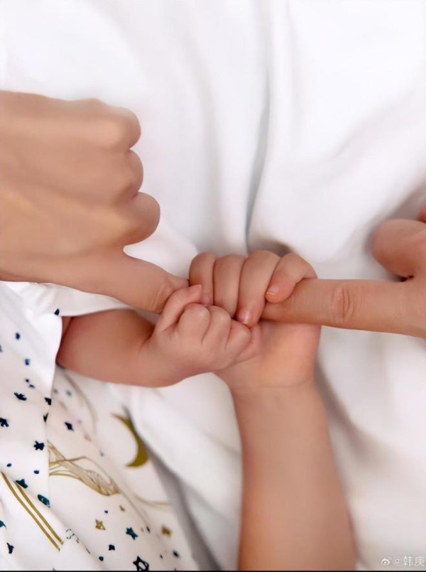 另一张照片里,宝宝的小手被爸爸妈妈的大手紧紧包裹,传递出满满的爱意。恭喜韩庚和卢靖姗,愿小宝贝健康成长,一家四口幸福美满!