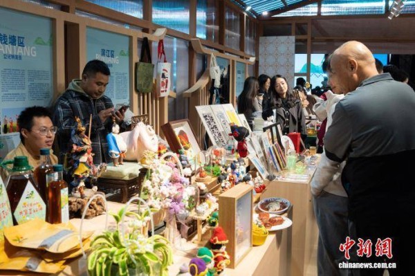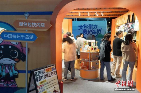 10月23日,文创市集展出了杭州各地的特色文创。当晚,2025千岛湖创意生活周在杭州市淳安县开幕。活动以千岛湖全域为舞台,通过文创展览、文艺展演、美食市集等多元形式,为游人呈现一场融合传统与现代的文化盛宴。中新社记者 吴君毅 摄