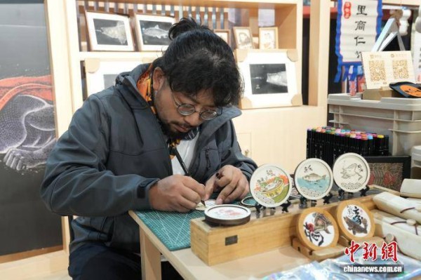 10月23日,手工艺人创作特色鱼绘文创。中新社记者 吴君毅 摄