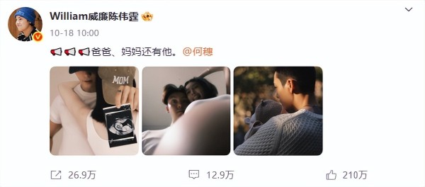 前几天,陈先生和何女士一起在社交账号上晒图官宣生子。