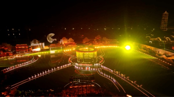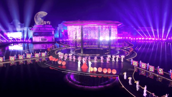 在舞台呈现上,晚会依托实景舞台,化用水景、园林等自然元素,形成“人入画中、戏在景中”的沉浸观感,灯光舞美也取写意笔法,融传统美学于现代视觉,营造出虚实相生、中西合璧的诗意空间。