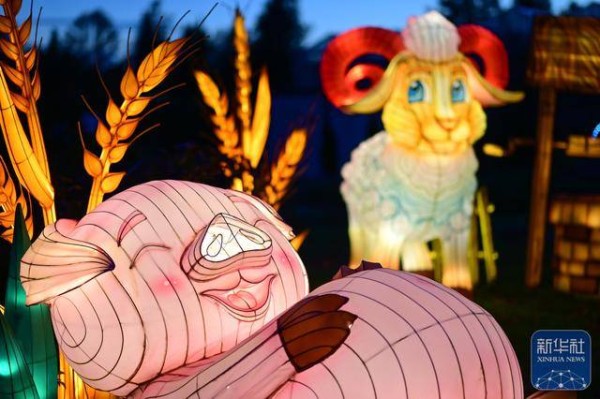 ↑这是10月25日在波兰华沙市郊的波兰科学院植物园“光之花园”灯光展上拍摄的彩灯造型。