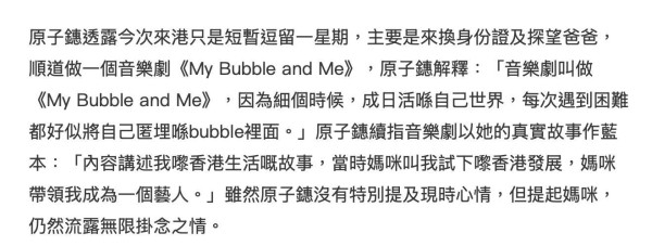 除了更换身份证,原子鏸还透露此行也是来探亲。令外界好奇的是,自从郑佩佩离世之后,原子鏸理应在香港就举目无亲了,她的姐姐、弟弟都在美国生活,大部分的亲友也都在海外,香港还有什么亲人?原来原子鏸的父亲原文通还一直住在香港,所以此次回香港的目的之一就是来探望父亲。而原文通在离婚之后就搬回了香港生活,从前原子鏸还在香港的时候,父女还经常联系,后来原子鏸搬走了,他的近况就不得而知了。