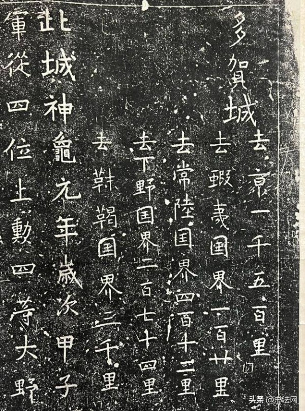 日本还曾出土过一些中文石碑,其中书艺最高的当属《多贺城碑》了。此碑立于奈良时代(762年),如今藏于宫城县多贺城市大字市川,与《那须国造碑》《多胡碑》并称“日本三大古碑”,记载多贺城于神龟元年(724年)由大野东人筑造,天平宝字六年(762年)由藤原朝獦修造,并标明此城与京都、虾夷国等地的方位、距离。