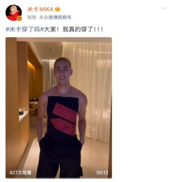米卡vogue红毯造型绝了,前面是婚纱,后面是西服,男明星里最敢穿的