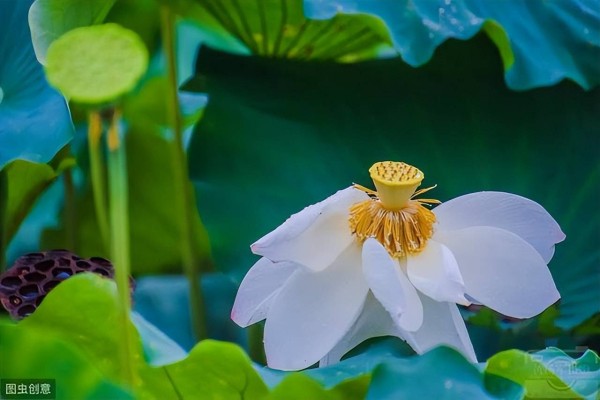 一场细雨过后,荷叶在微风中翻动,石榴花像火焰一样在湿润的环境中愈发鲜艳。纤细的手拨动着清池泉水,水珠溅落在荷叶上,如同珍珠般晶莹剔透,偶尔碎开,又在瞬间聚成圆形。