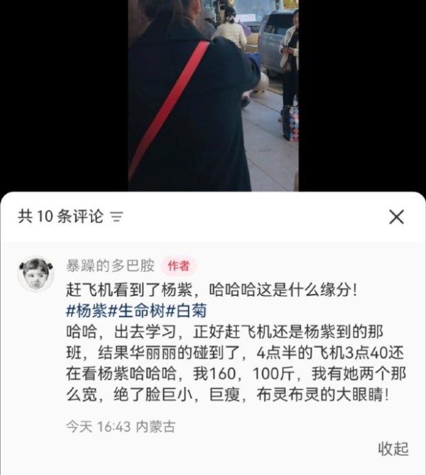 路人赶飞机偶遇杨紫听视频里“唉呀妈呀都瘦成个条条了”“你其实很美噢”笑鼠我了