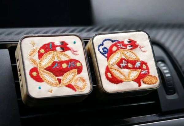 《手工刺绣车载香薰》