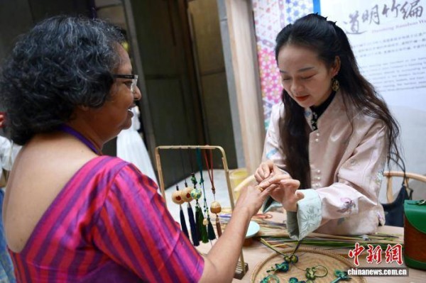 图为道明竹编吸引参会嘉宾。中新社记者 张浪 摄
