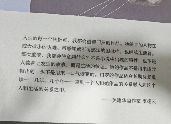 相信你会在门罗的文字中找到共鸣,获得启发,重新找回对生活的热爱和勇气。