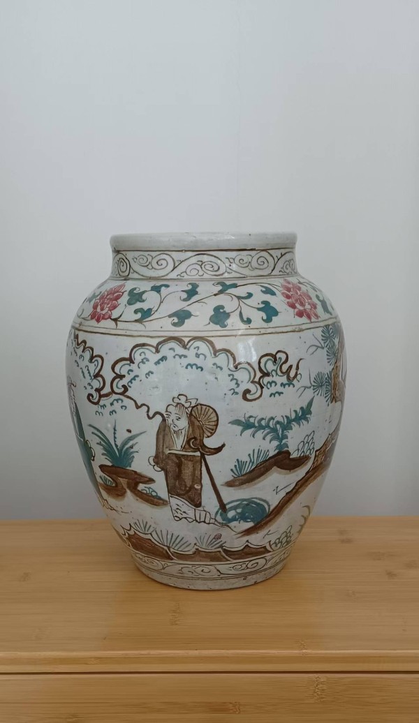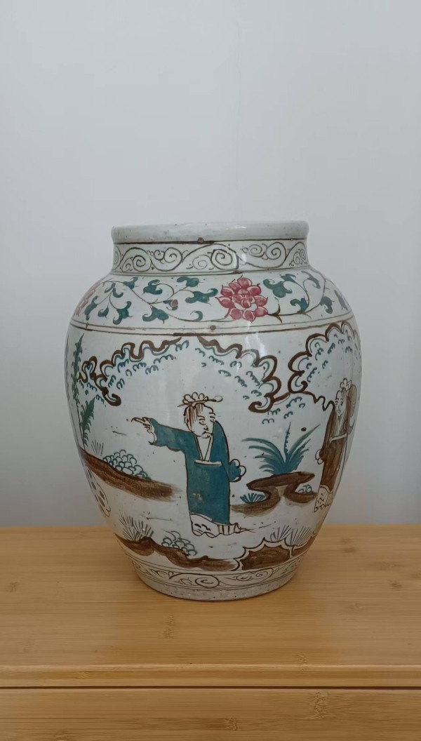 对于收藏与鉴赏者而言,这件五彩对弈人物纹罐可从以下维度品读: