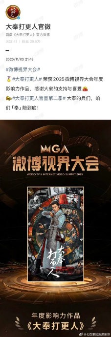 王鹤棣大奉打更人在微博视界大会官宣有第二季,就说我们小大奉真的播得不错的