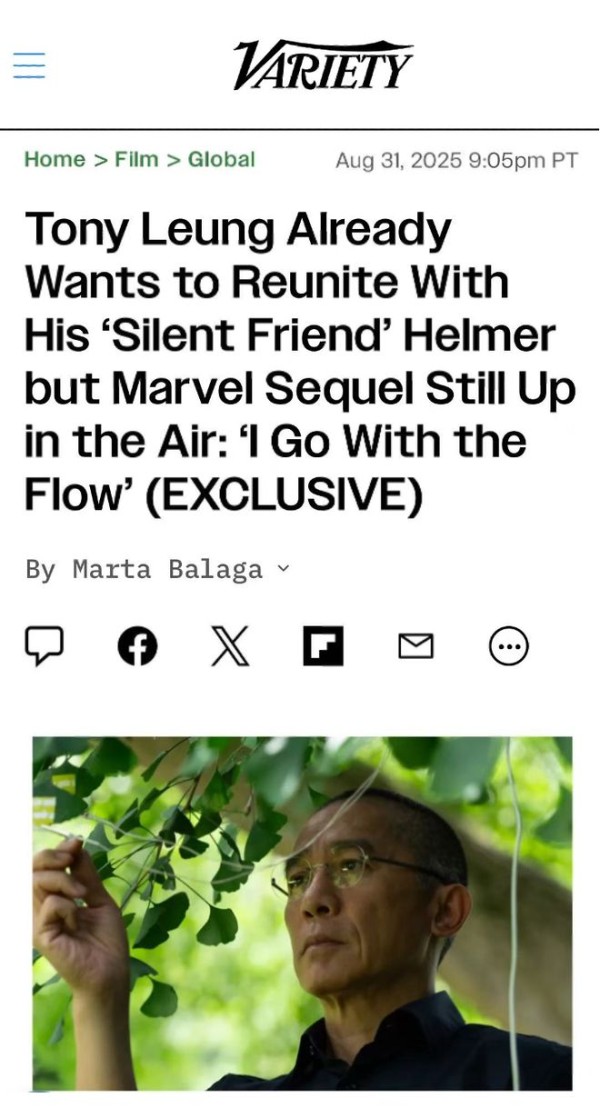 在今年威尼斯电影节首映前,《寂静的朋友》主演梁朝伟接受《综艺》采访:“我很想再和导演伊尔蒂科合作”。