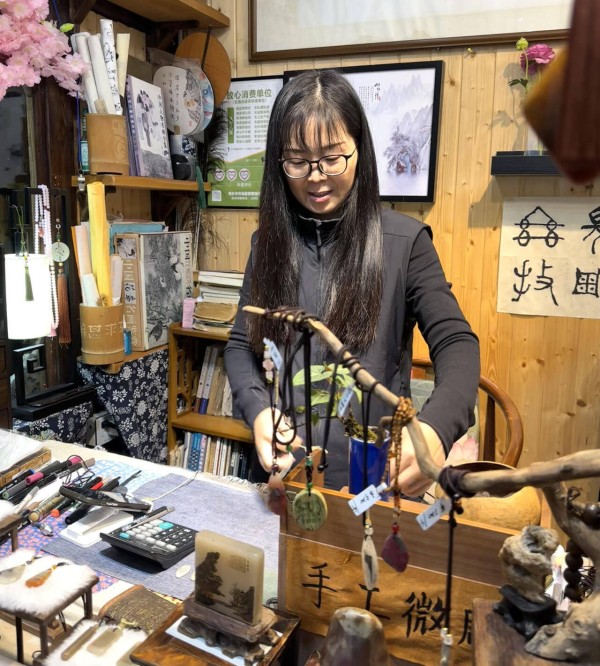 “随机进的小店,真的很感动,要有多宁静的心境,才会创作这样的作品。”来自北京的孙女士带走了一个微雕挂饰作为伴手礼,她后续还将打卡互联网之光博览会、濮院等列入了行程,“感受水乡文化,再见识黑科技!”