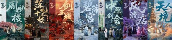 《水龙吟》创新性地采用"一境一色"的设计理念,为每个场景赋予独特的视觉标识。制作团队通过精准的色彩调度,让人间场景以高饱和色调彰显烟火气息,其中周睇楼的粉、绿、金主调营造出浪漫唯美的世外桃源,剑王城的赤、金、黄暖色调则渲染出辉煌壮丽的史诗感。在超凡之地的表现上,创作团队巧妙运用冷调与高饱和色彩的碰撞,碧落宫的冰蓝、雪白营造出清冷孤寂的意境,与人间暖色形成鲜明对比,构建出层次分明的视觉叙事空间。