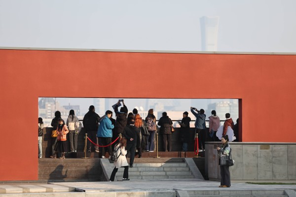 学生们走上隆福文化中心顶层,在东、西两侧平台俯眺北京城。新京报记者王飞 摄
