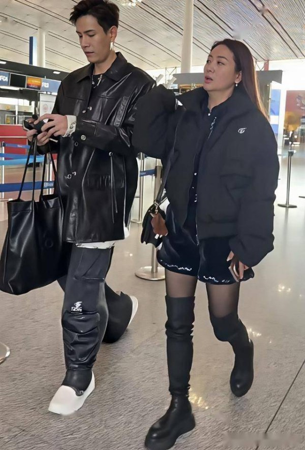 39岁经超给45岁妻子小李琳补求婚经超夫妇现身机场,小李琳瘦了好多看着更年轻了,再没人说他俩像母子了!