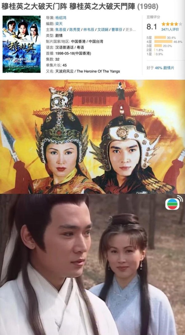 5、《穆桂英之十二寡妇征西》。1998年亚视也推出过穆桂英的故事,可能是从冯宝宝获得的灵感,这版的杨文广也是田蕊妮反串的。比较特别的是,穆桂英由气质温婉的陈秀雯饰演的。之前陈秀雯的经典角色是《再见亦是老婆》里的精明师奶,是《再见艳阳天》里外柔内刚的大气贤妻,没想到演起女将军来不仅有反差美,还更加突出了穆桂英以女性柔弱身躯保家卫国的巾帼英雄特点。